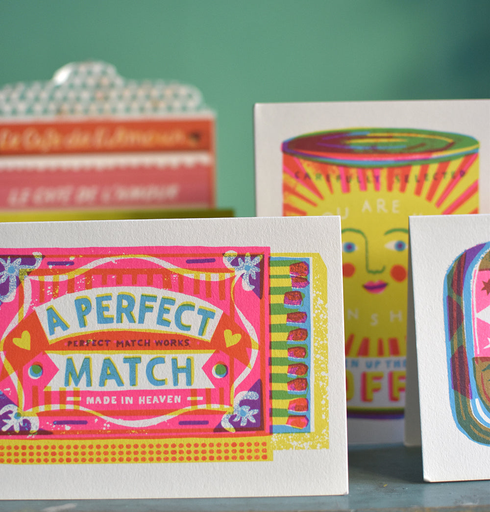 All of my cards are of the highest quality, printed in the UK on sustainably sourced card and packed in 100% compostable cello bags. The colours just zing!